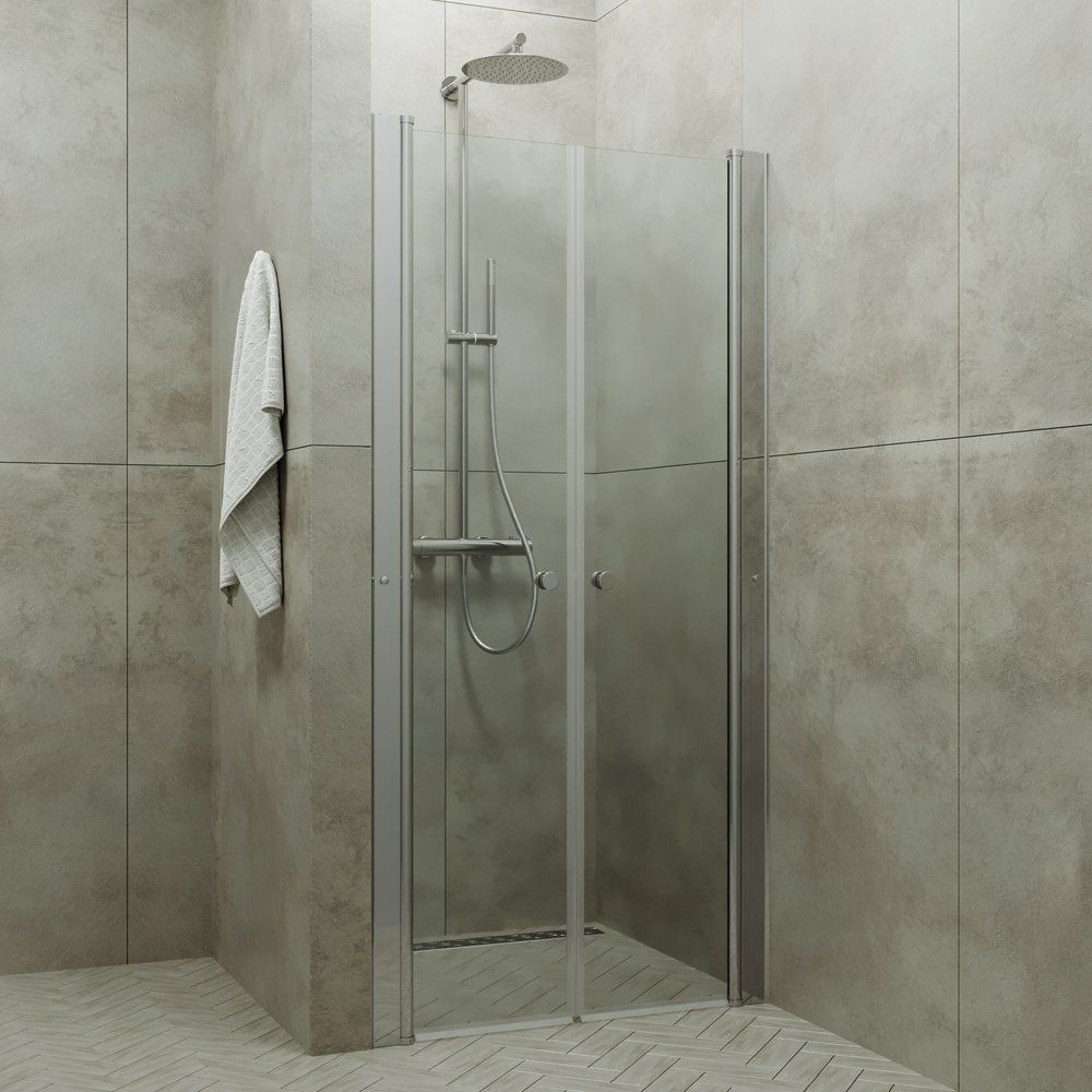 Душевая дверь Тритон Дабл, размер 900х1850 мм, профиль алюминий, стекло прозрачное.