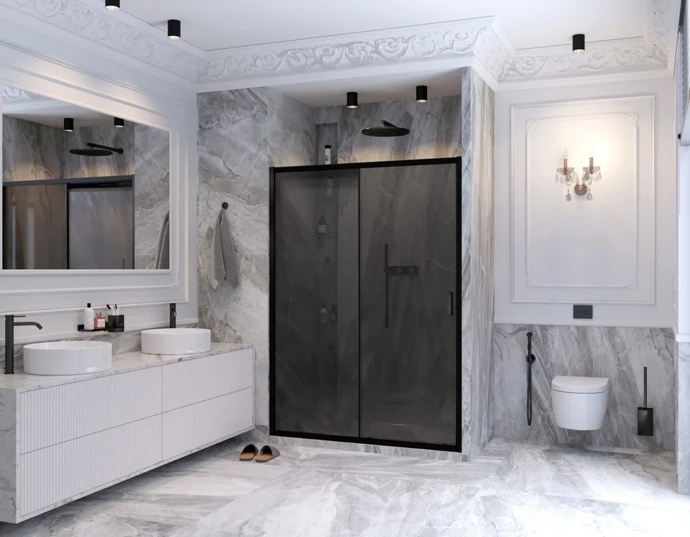 Душевая дверь Ambassador Forsa, размер 1500х2000 мм, профиль чёрный, стекло тонированное 6 мм. Габариты регулировки (1485x1500)x2000 мм, ширина входа 630 мм. Поддон приобретается отдельно.