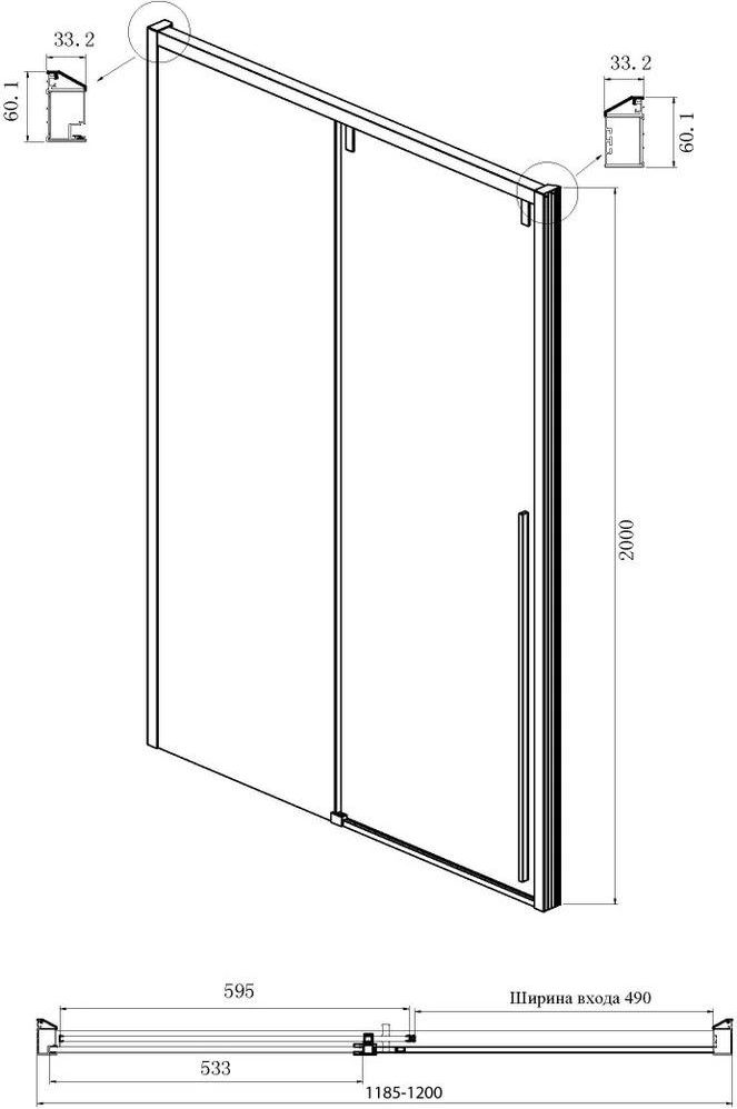 Душевая дверь Ambassador Intense, размер 1200х2000 мм, профиль чёрный, стекло тонированное 8 мм. Габариты регулировки (1185x1200)x2000 мм, ширина входа 490 мм. Поддон приобретается отдельно.