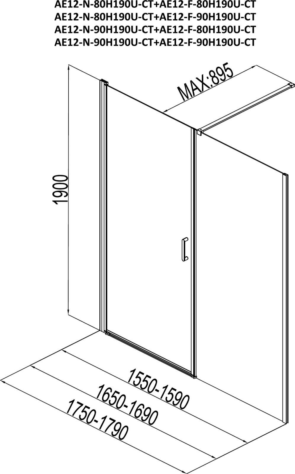 Душевая дверь Aquanet Cinetic AE12-N-90H190U-CT+AE12-F-80H190U-CT 170 см, хром/прозрачное