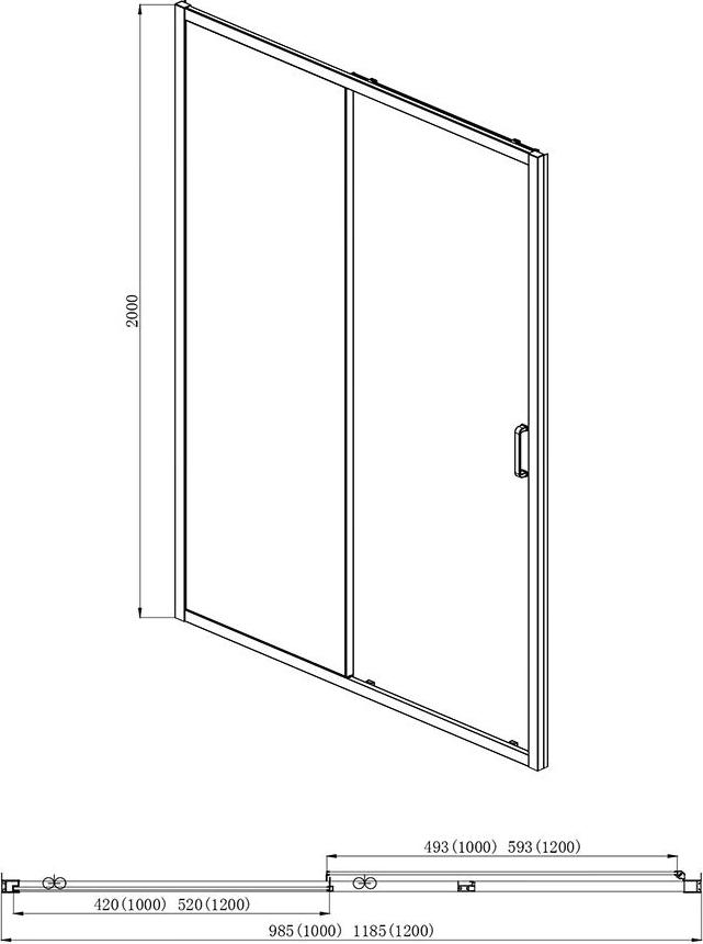 Душевая дверь Aquatek AQ ARI RA 10020GM, размер 100х200 см, профиль чёрный, стекло прозрачное.