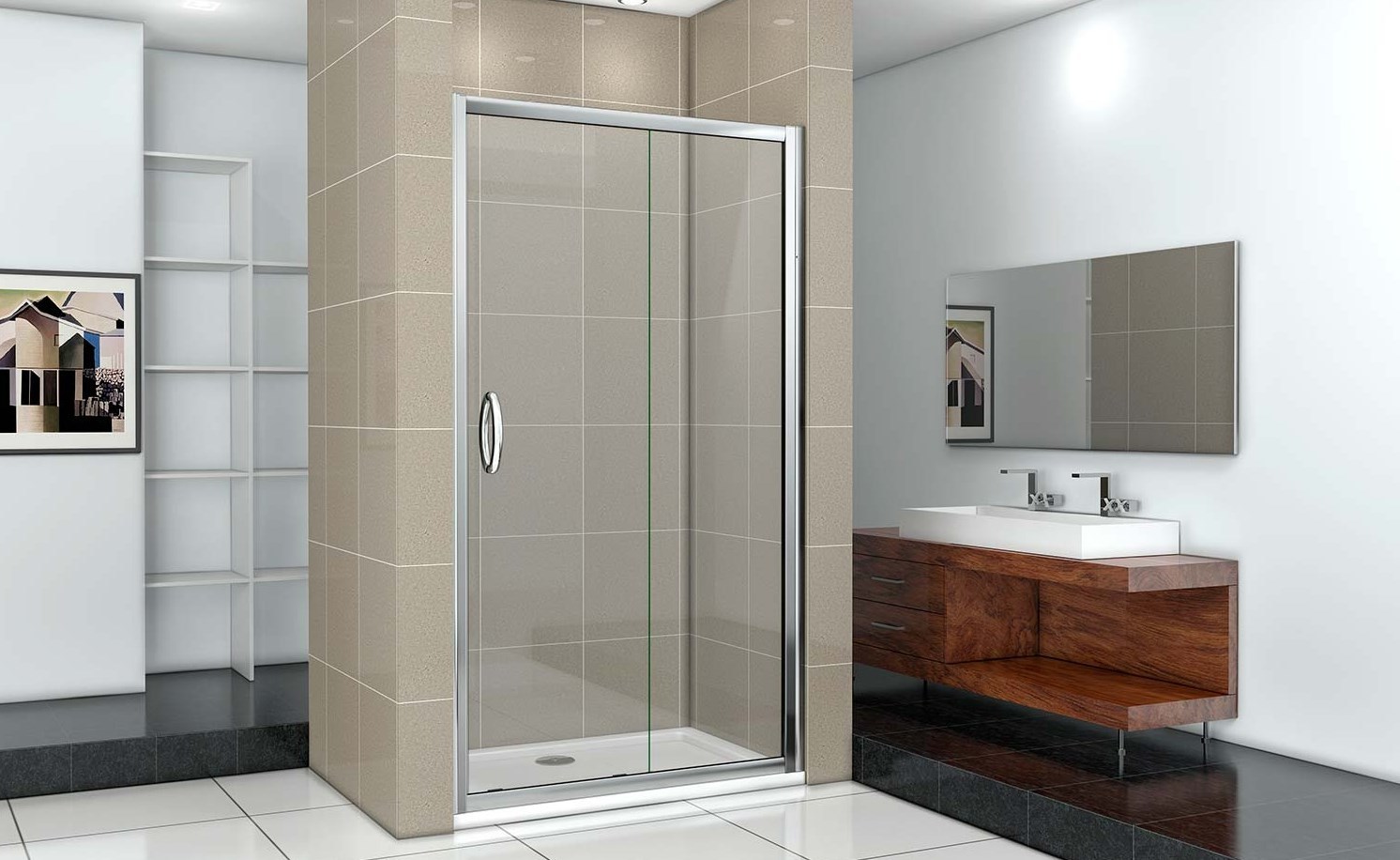 Душевая дверь Bas Infinity WTW-110-W-CH, размер 1100х1850 мм, профиль хром, стекло прозрачное/узор. Габариты регулировки (1080-1120)x1850 мм. Вход 450 мм.