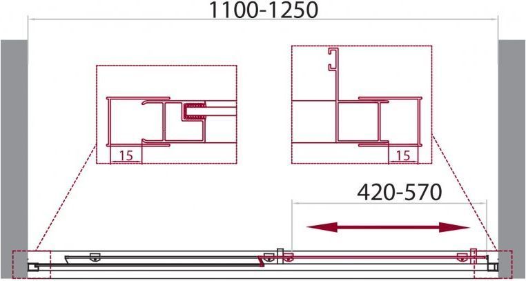 - Регулировка ширины предусмотрена за счет боковых профилей