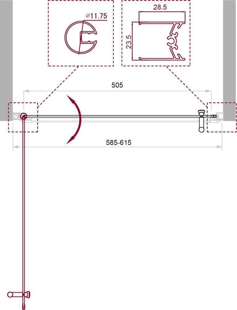 - Регулировка ширины предусмотрена за счет боковых профилей