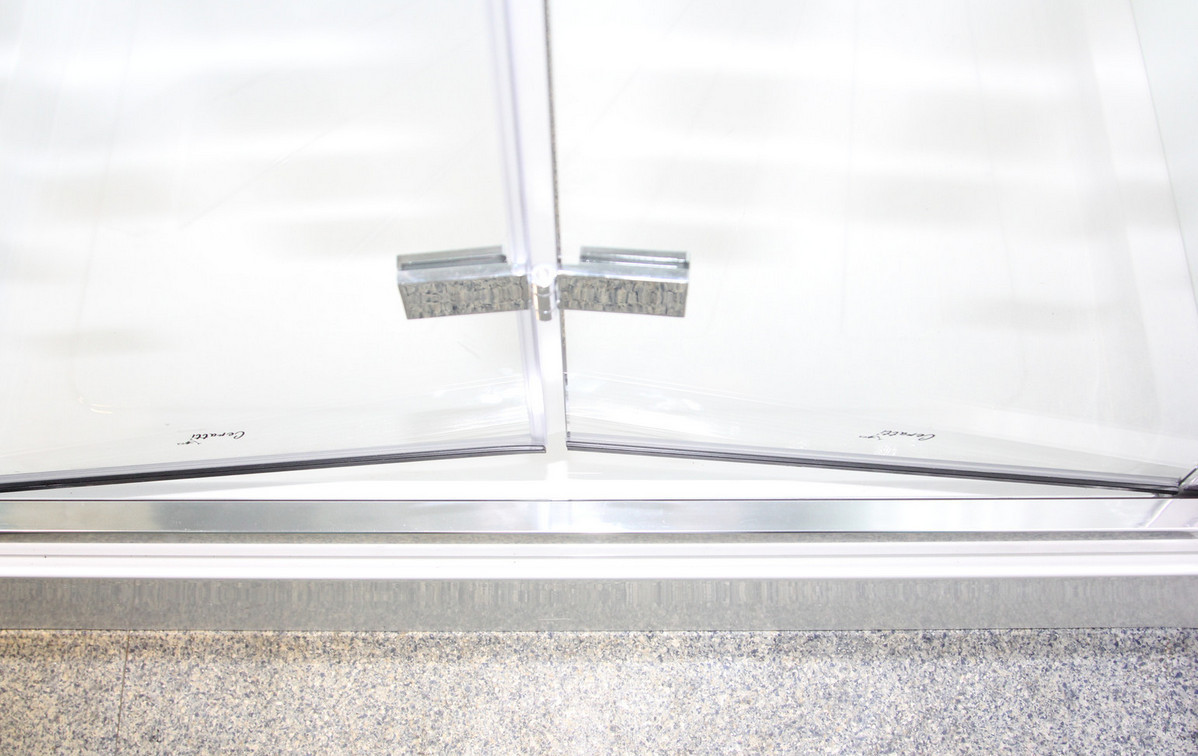 - Безопасное закаленное стекло, 5 мм. Разбить довольно сложно. Если разбивается, то рассыпается в крошку с неострыми краями - пораниться практически невозможно.Хромированный алюминиевый профиль Cromato.