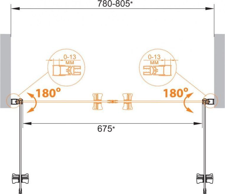 - Габариты с диапазоном регулировок: (780-805)х1900 мм
