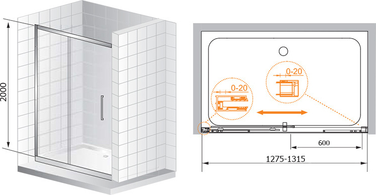 Характеристики Душевая дверь Cezares (PREMIER-SOFT-W-BF-1-130-C-Cr-IV)