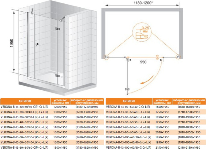 Описание Душевая дверь Cezares VERONA-W-B-13-30+60/60-C-Cr