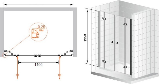 - ширина входа 110 см;