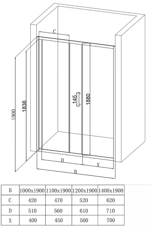 Душевая дверь EvaGold 140 см EG220052, хром/рифленое