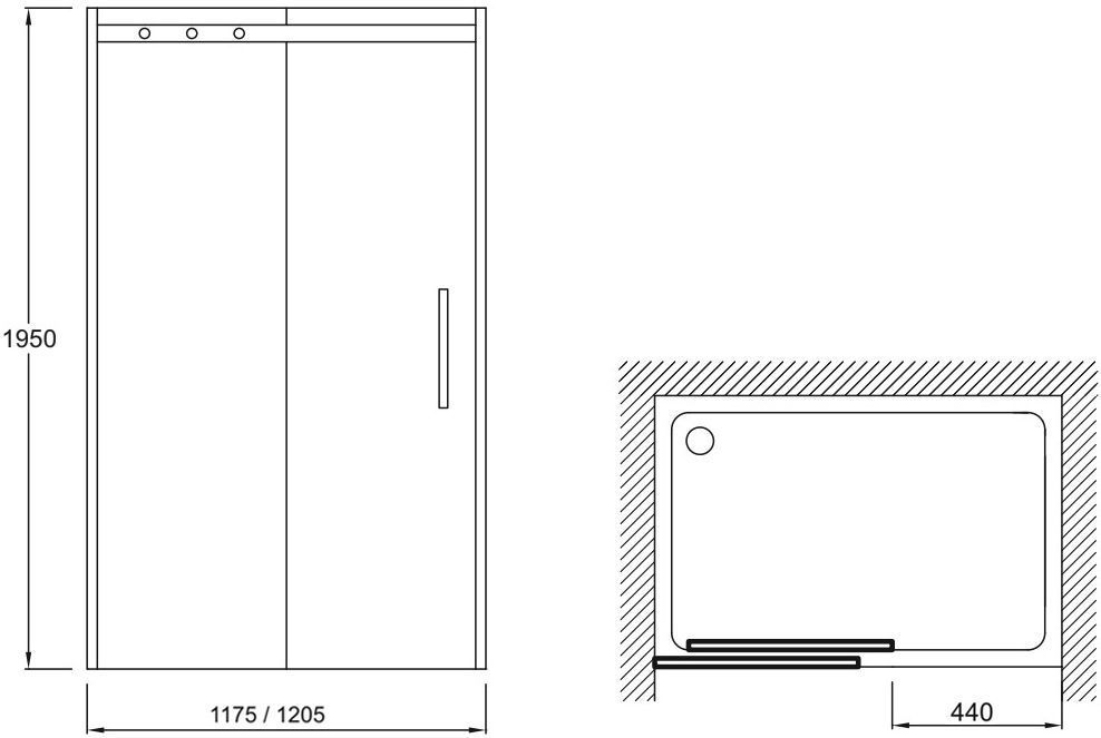 Душевая дверь Jacob Delafon Contra E22C120-GA 1205х1950 мм, профиль хром, стекло прозрачное, 8 мм. Душевой поддон приобретается отдельно.
