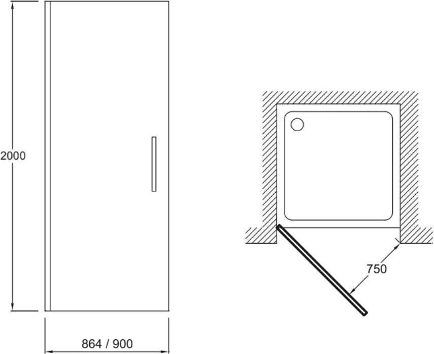 Душевая дверь Jacob Delafon Contra E22T90-GA 900х2000 мм, профиль хром, стекло прозрачное, 6 мм. Душевой поддон приобретается отдельно.
