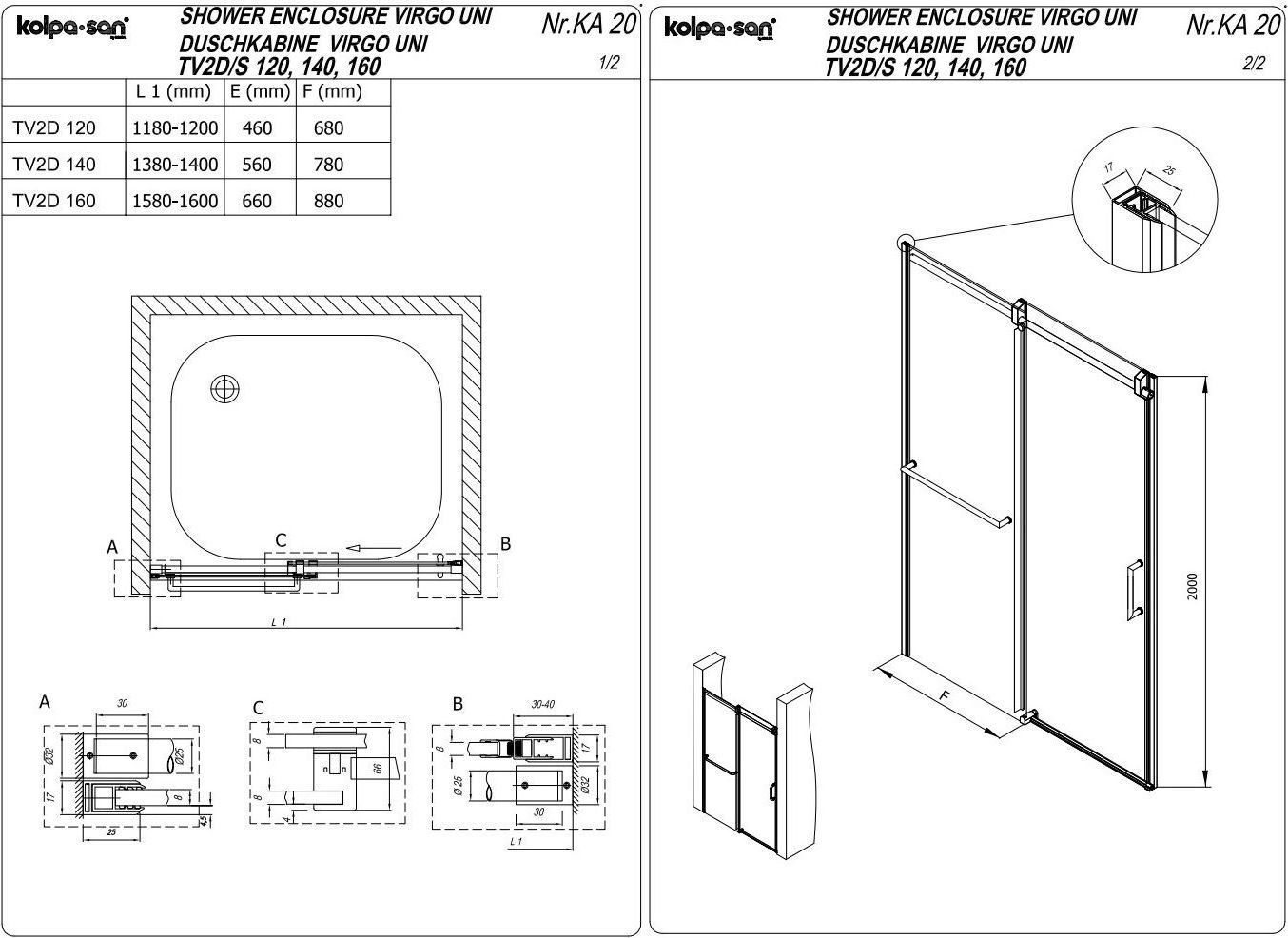 Душевая дверь Kolpa-San Virgo TV/2DS 1400 мм, цвет стекла - прозрачное, цвет профиля - хром, поддон приобретается отдельно.