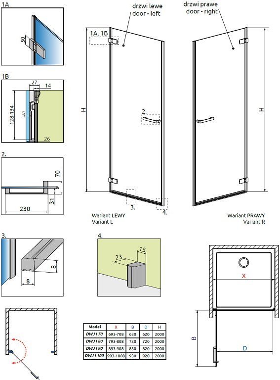 - Эту душевую дверь возможно установить как на поддоне, так и непосредственно на пол.