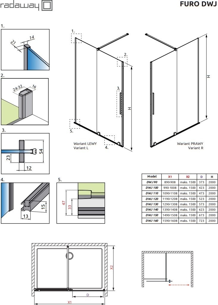 Душевая дверь Radaway Furo DWJ 1400х2000 мм, стекло - прозрачное 8 мм, профиль - хром. Душевой поддон приобретается отдельно.