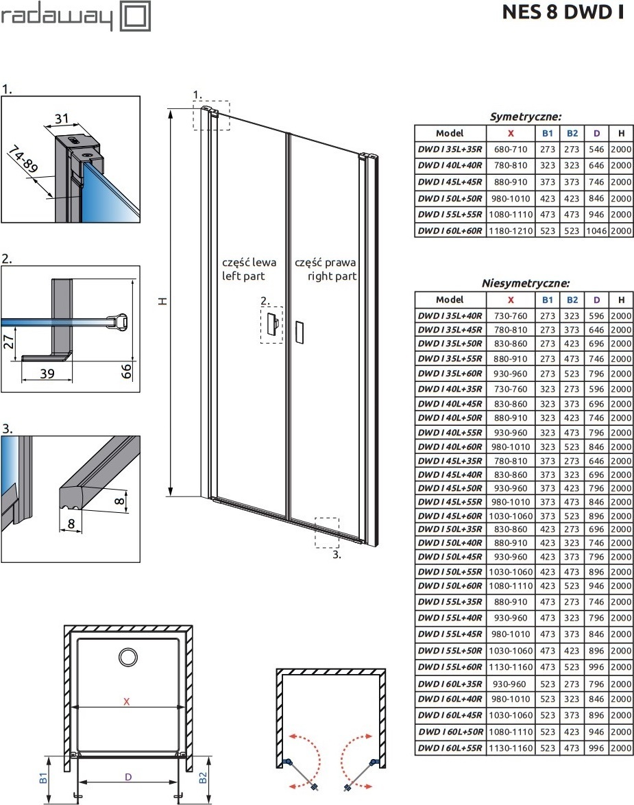 Описание Душевая дверь Radaway 10077035-54-01L+10077040-54-01R