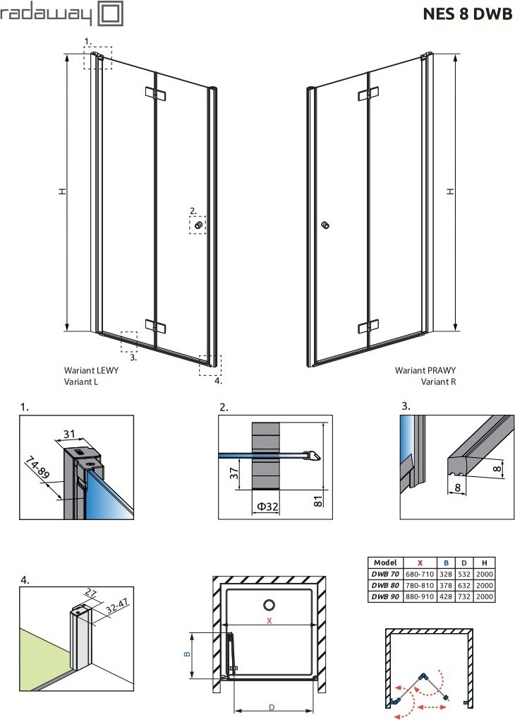 Описание Душевая дверь Radaway 10079070-01-01L