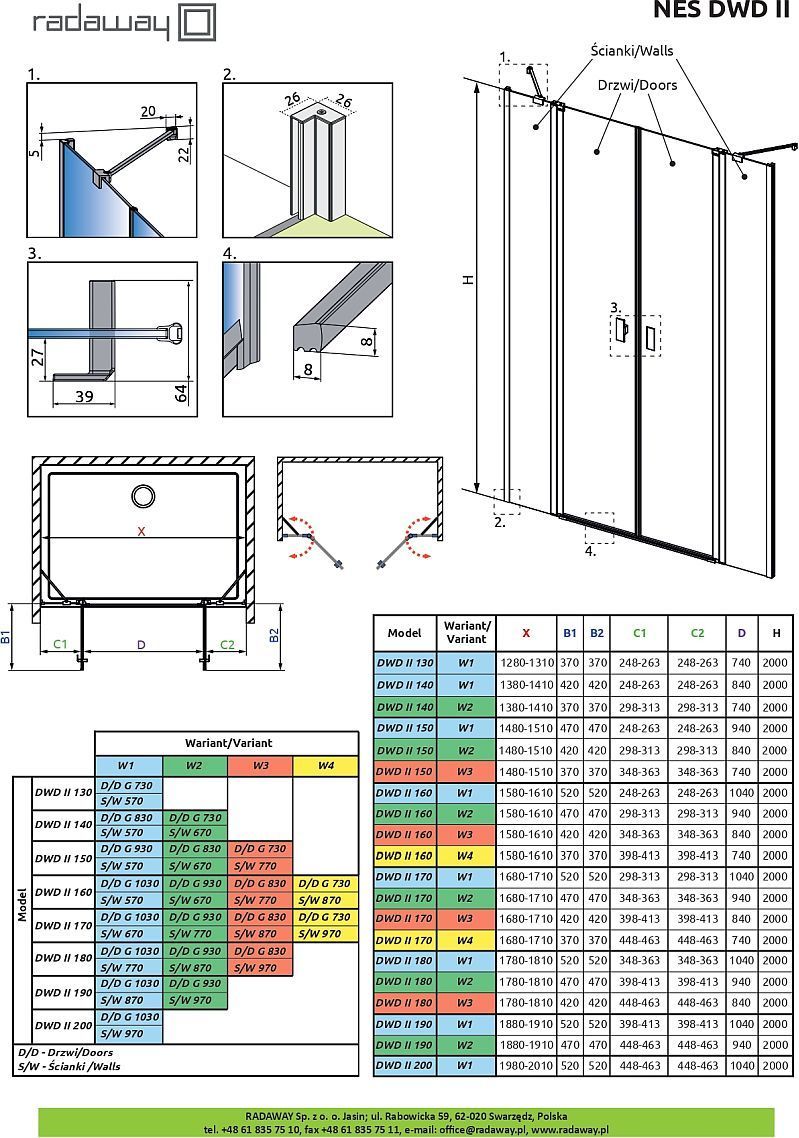 Душевая дверь Radaway Nes DWD II 1700x2000 мм, состоящая из распашной двери 1030 и комплекта неподвижных стенок 670, стекло - прозрачное 6 мм, профиль - хром. Размеры с диапазоном регулировок: 1680-1710 мм. Ширина входа: 1040 мм. Поддон приобретается отдельно.
