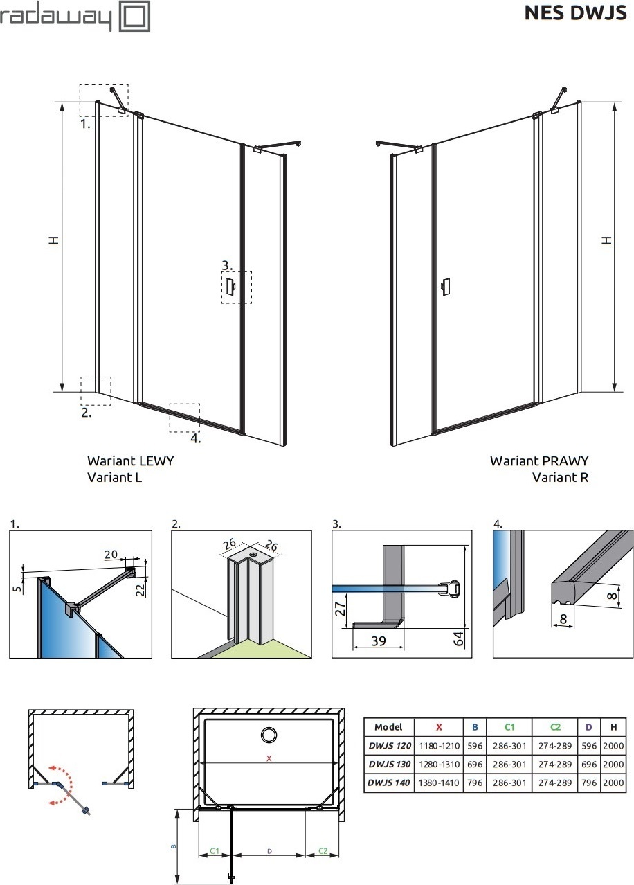 Характеристики Душевая дверь Radaway (10038140-01-01R)