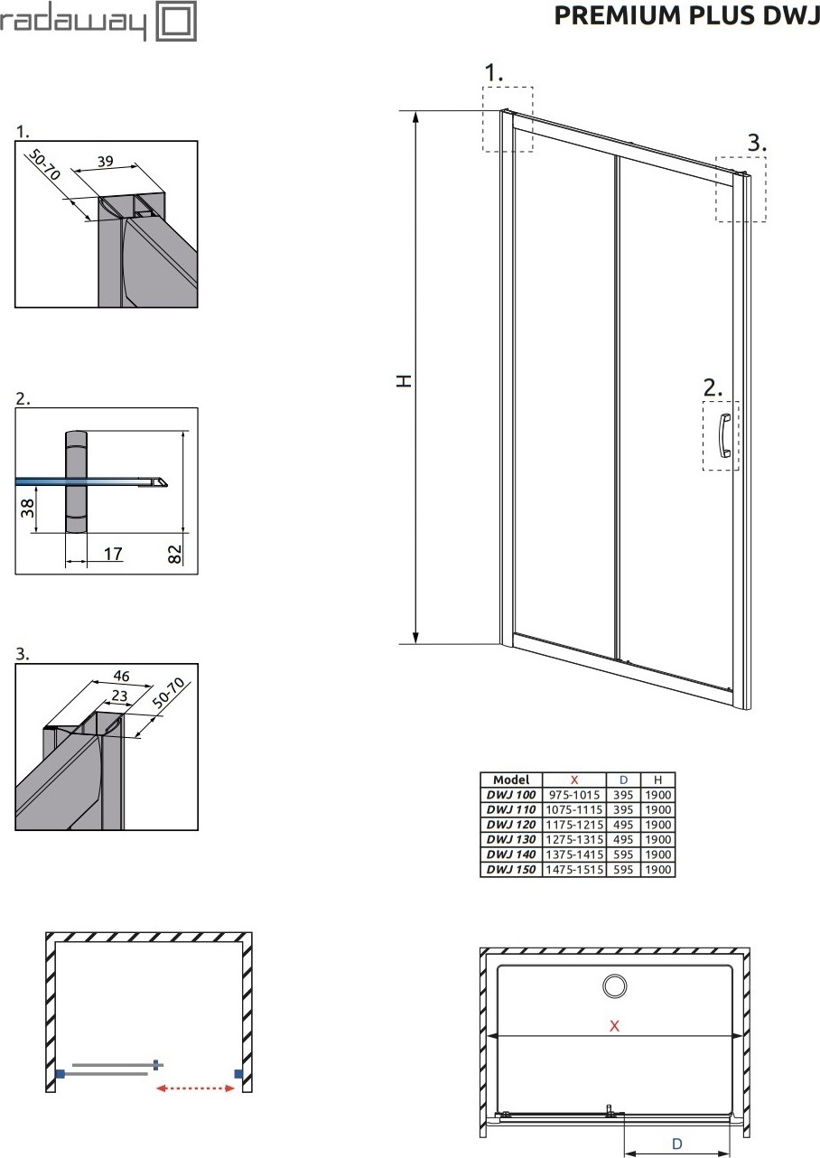 Душевая дверь Radaway Premium Plus DWJ 1500*1900 мм, стекло - прозрачное 5-6 мм, профиль - хром.