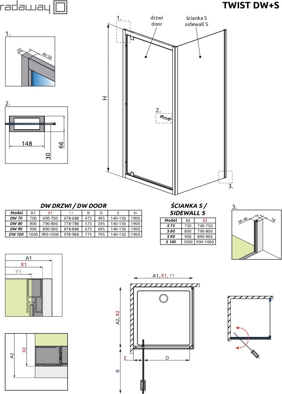 Душевая дверь Radaway Twist DW 700*1900 мм, стекло - прозрачное 6 мм, профиль - хром.