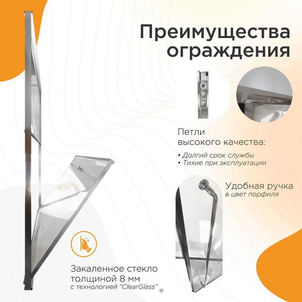 - Закалённое стекло (толщина 8 мм): Прочное закаленное стекло обладает повышенной ударостойкостью и надёжностью. Специальное покрытие Radomir® ClearGlass предотвращает появление разводов и облегчает уход.