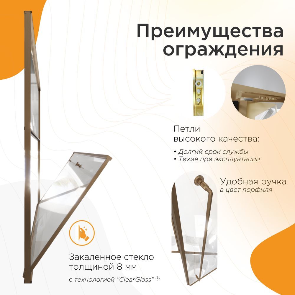 - Закалённое стекло (толщина 8 мм): Прочное закаленное стекло обладает повышенной ударостойкостью и надёжностью. Специальное покрытие Radomir® ClearGlass предотвращает появление разводов и облегчает уход.