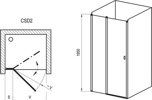 Душевые двери 100х195 см двухэлементные Ravak Chrome CSD2-100, в комплекте металлический держатель, профиль - блестящий, стекло - Transparent, вход 655 мм.