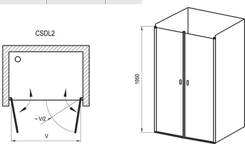 Душевые двери 90х195 см двухэлементные Ravak Chrome CSDL2-90, профиль - белый, стекло - Transparent, вход 720мм.