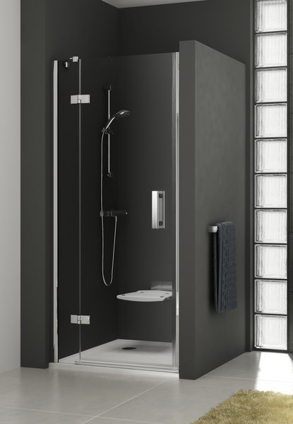Душевая дверь 110х190 см двухэлементные Ravak SmartLine SMSD2-110, в комплекте 1 короткий держатель, профиль - хром, стекло - Transparent, вход 629 мм.