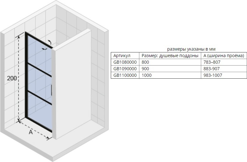 Душевая дверь Riho Grid GB 101 900x2000 мм, цвет стекла - прозрачное, цвет профиля - черный, поддон приобретается отдельно.