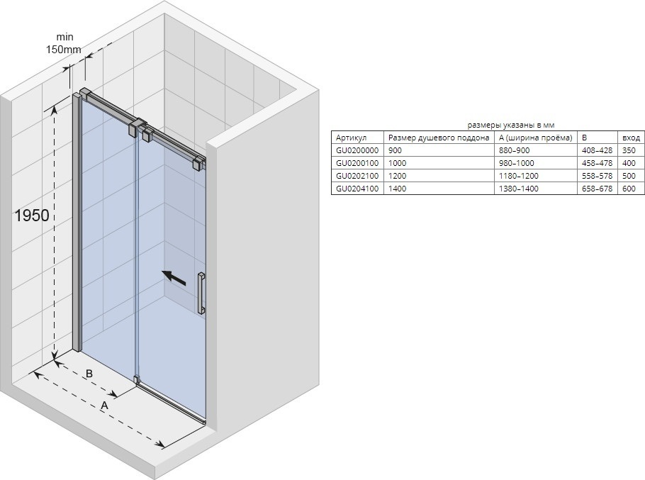 Душевая дверь Riho Ocean O104 1400x2000 мм, цвет стекла - прозрачное, цвет профиля - хром, поддон приобретается отдельно.