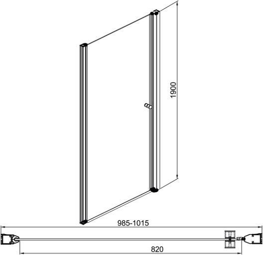 Душевая дверь Sole Enter, размер 1000х1900 мм. Профиль хром, стекло прозрачное. Вход 820 мм, габариты регулировки (985-1015)х1900 мм.