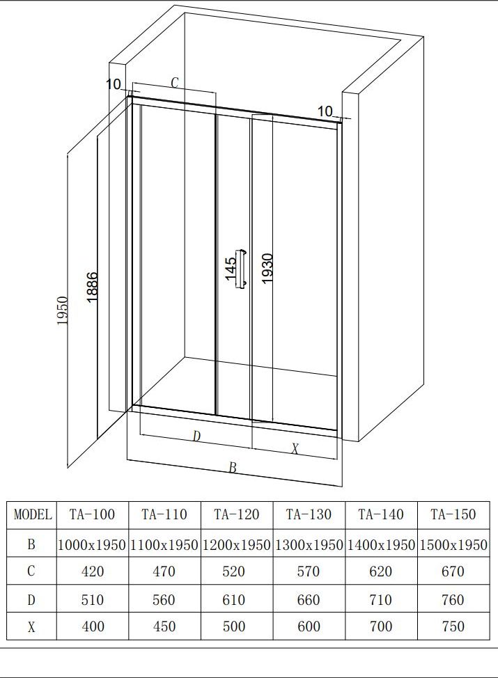 Характеристики Душевая дверь Taliente (TA-100-1CP)