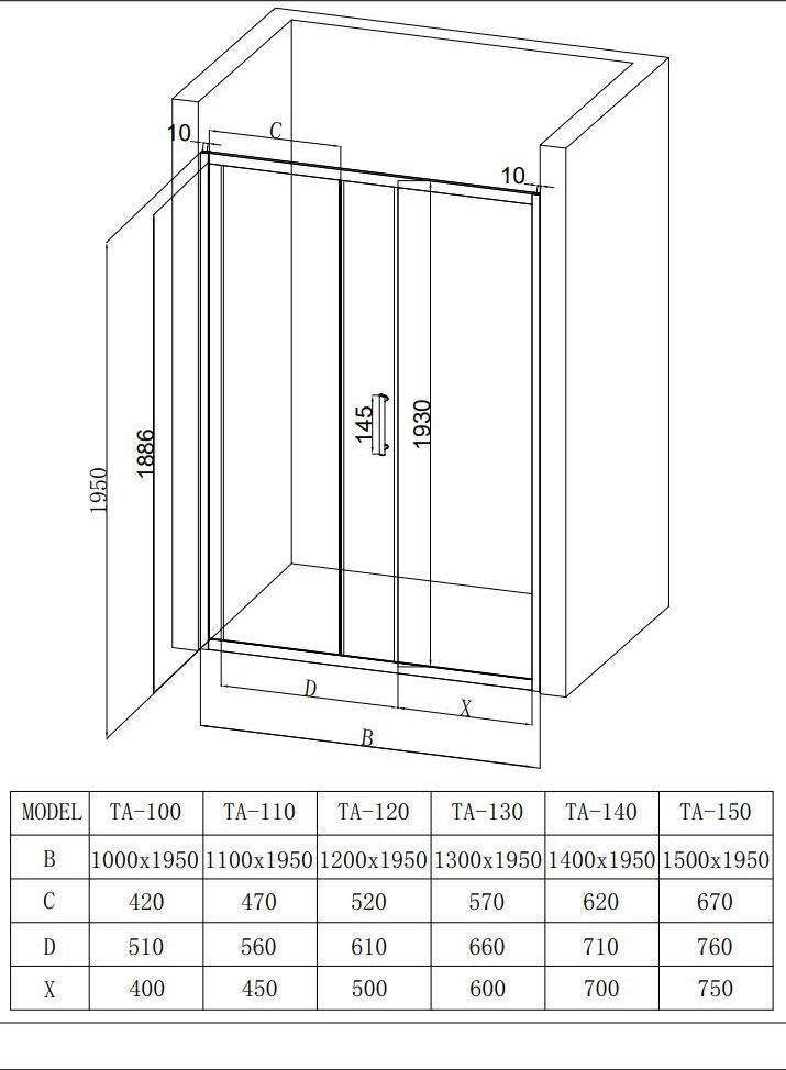 Характеристики Душевая дверь Taliente (TA-130-1CB)