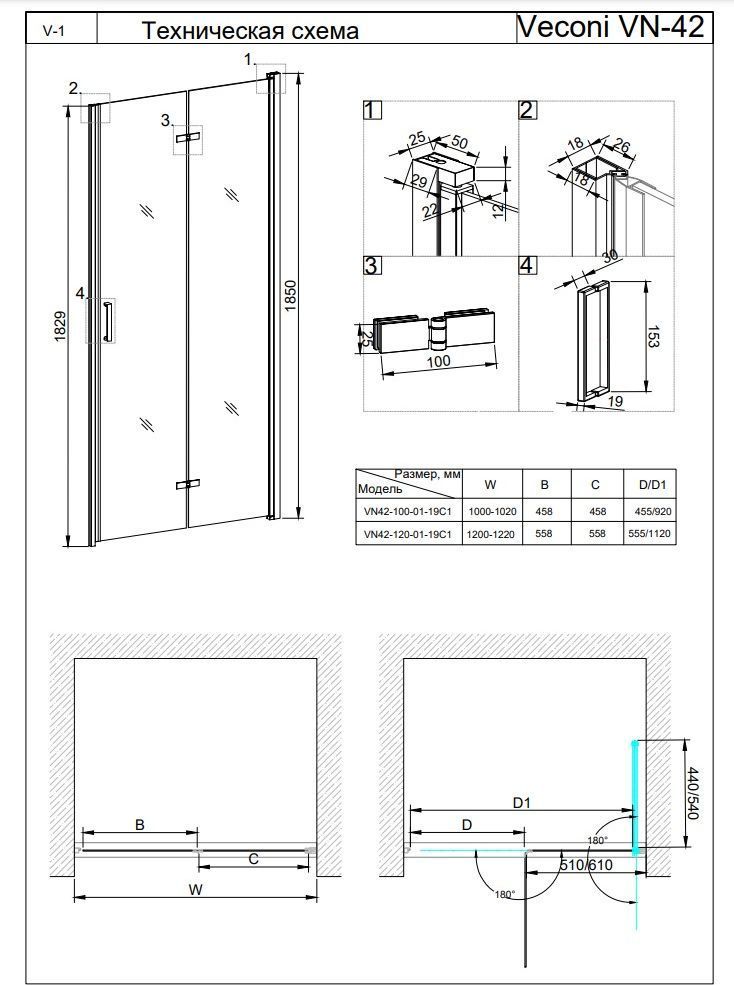 Описание Душевая дверь Veconi VN42-100-01-19C1