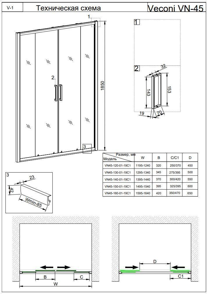 Характеристики Душевая дверь Veconi ( VN45-120-01-19C1)