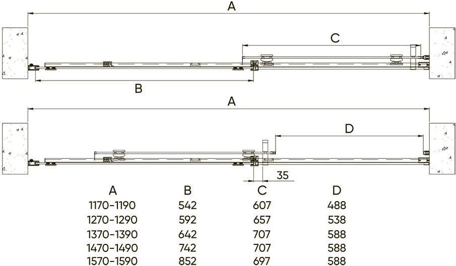 Душевая дверь Veconi Vianno VN-70, размер 120х195 см, профиль чёрный, стекло прозрачное, вход 488 мм. Габариты регулировки (1170-1200)х1950 мм.