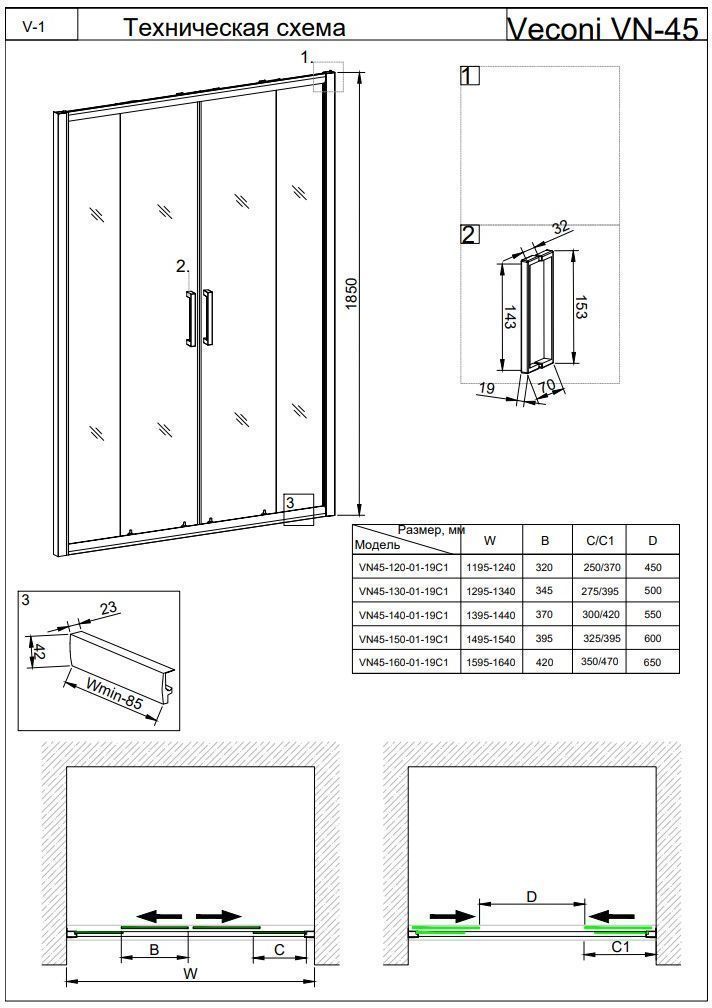 Характеристики Душевая дверь Veconi ( VN45-130-02-19C1)