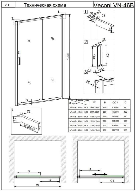 Описание Душевая дверь Veconi VN46B-150-01-C5