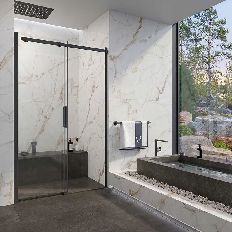 Душевая дверь Veconi Vianno VN-70, размер 150х195 см, профиль чёрный, стекло прозрачное, вход 588 мм. Габариты регулировки (1470-1500)х1950 мм.