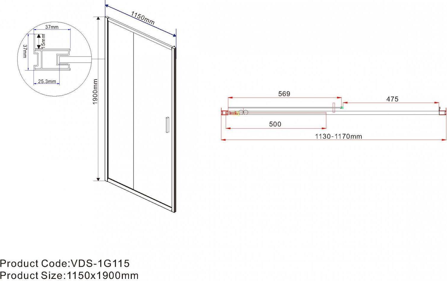 Душевая дверь Vincea Garda 1150х1900 мм, стекло - шиншилла 6 мм, профиль - хром, ширина входа - 475 мм, габариты с диапазоном регулировок: 1130-1170 мм, поддон приобретается отдельно.