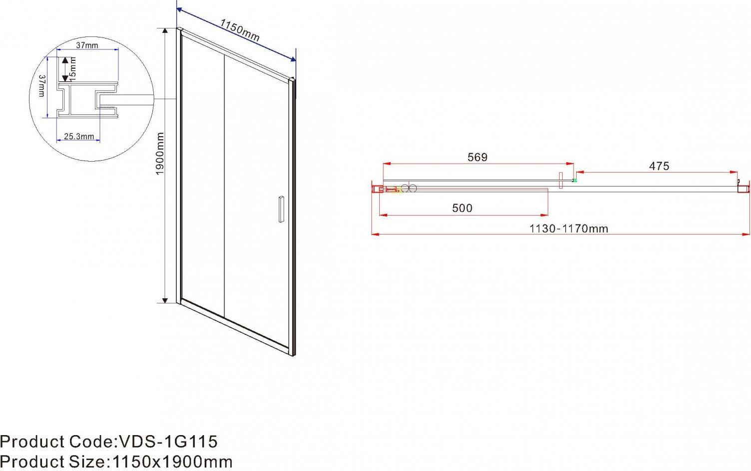 Душевая дверь Vincea Garda 1150х1900 мм, стекло - прозрачное 6 мм, профиль - хром, ширина входа - 475 мм, габариты с диапазоном регулировок: 1130-1170 мм, поддон приобретается отдельно.