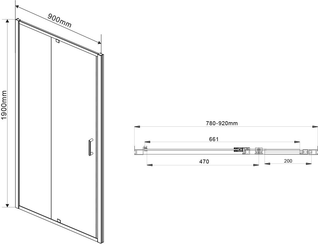 Душевая дверь Vincea Intra 800-900х1900 мм, стекло - прозрачное 6 мм, профиль - хром, ширина входа - 470 мм, габариты с диапазоном регулировок: 780-920 мм, поддон приобретается отдельно.