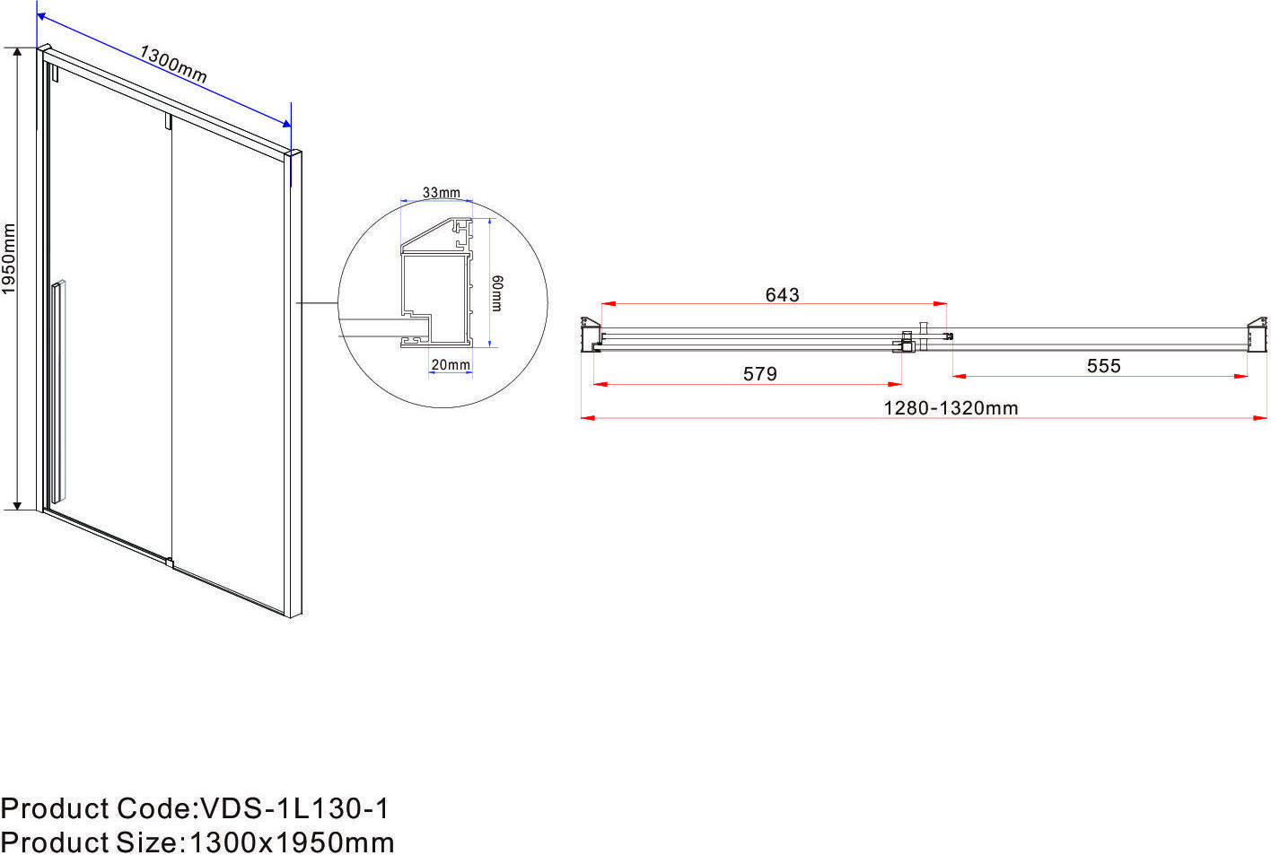Душевая дверь Vincea Lugano 1300х1950 мм, стекло - прозрачное 8 мм, профиль - хром, ширина входа - 555 мм, габариты с диапазоном регулировок: 1280-1320 мм, поддон приобретается отдельно.