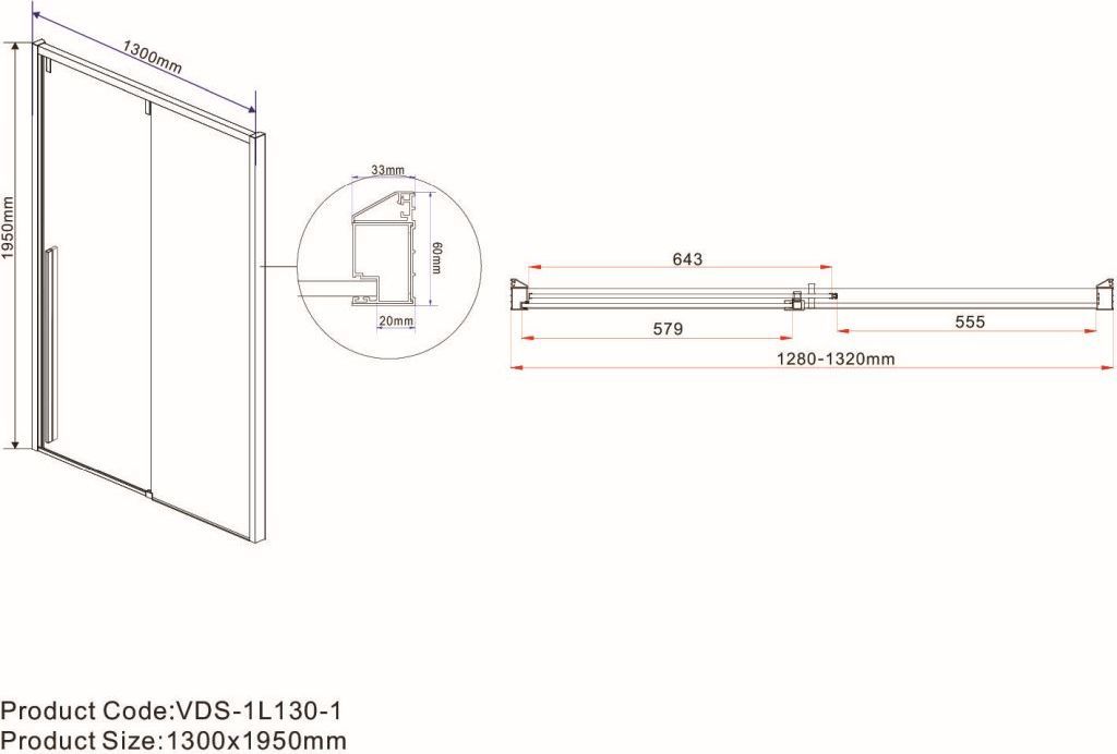 Описание Душевая дверь Vincea VDS-1L130CLB-1