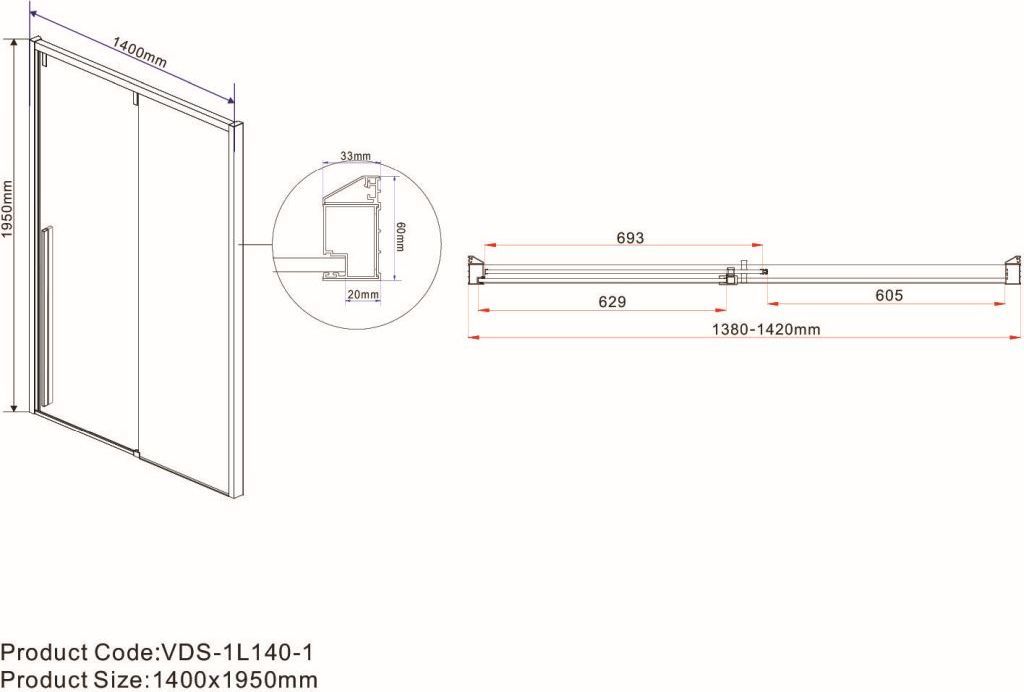 Описание Душевая дверь Vincea VDS-1L140CLB-1