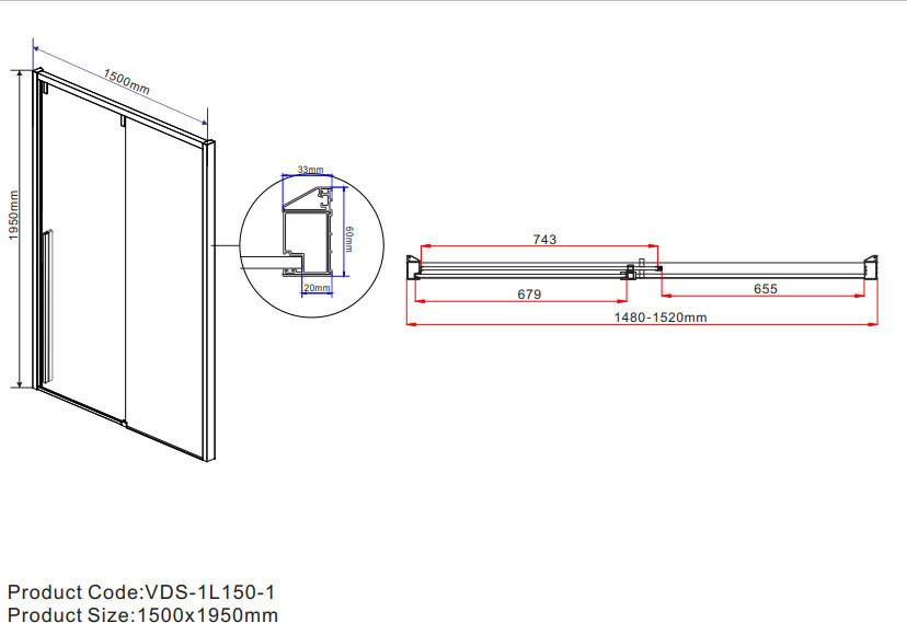 Душевая дверь Vincea Lugano 1500х1950 мм, стекло - прозрачное 8 мм, профиль - хром, ширина входа - 655 мм, габариты с диапазоном регулировок: 1480-1520 мм, поддон приобретается отдельно.