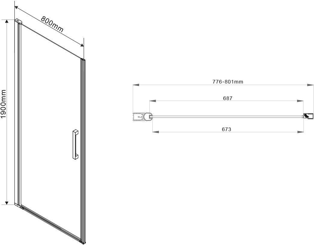 Душевая дверь Vincea Orta VPP-1O800CLB 800x1900 мм, стекло - прозрачное, 6 мм, профиль черный, поддон приобретается отдельно. Регулировочные размеры: 776-801 мм. Ширина входа: 673 мм.