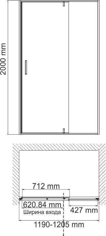 Душевая дверь WasserKraft Aisch 55P05 1200х2000 мм. Цвет профиля – матовое золото, цвет стекла – прозрачное, 6 мм. Регулируемый профиль до 15 мм. Ширина входа 620 мм. Душевой поддон приобретается отдельно.